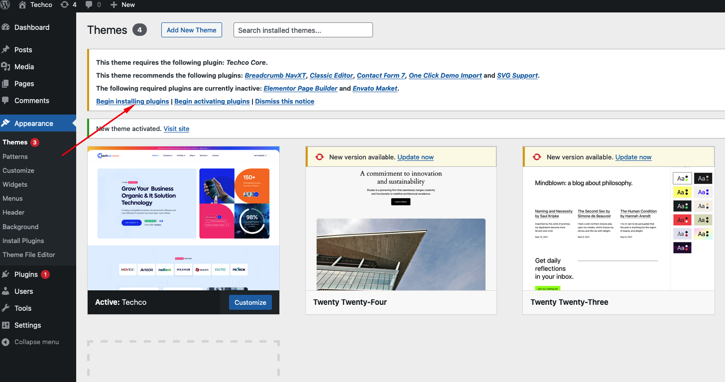 You will now see Techco Theme listed among the other themes. Click on Activate and you’re done!