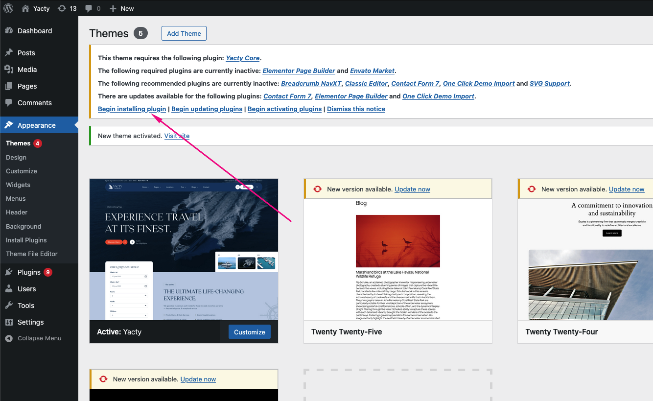 You will now see Yacty Theme listed among the other themes. Click on Activate and you’re done!